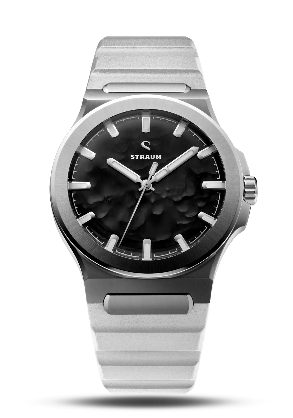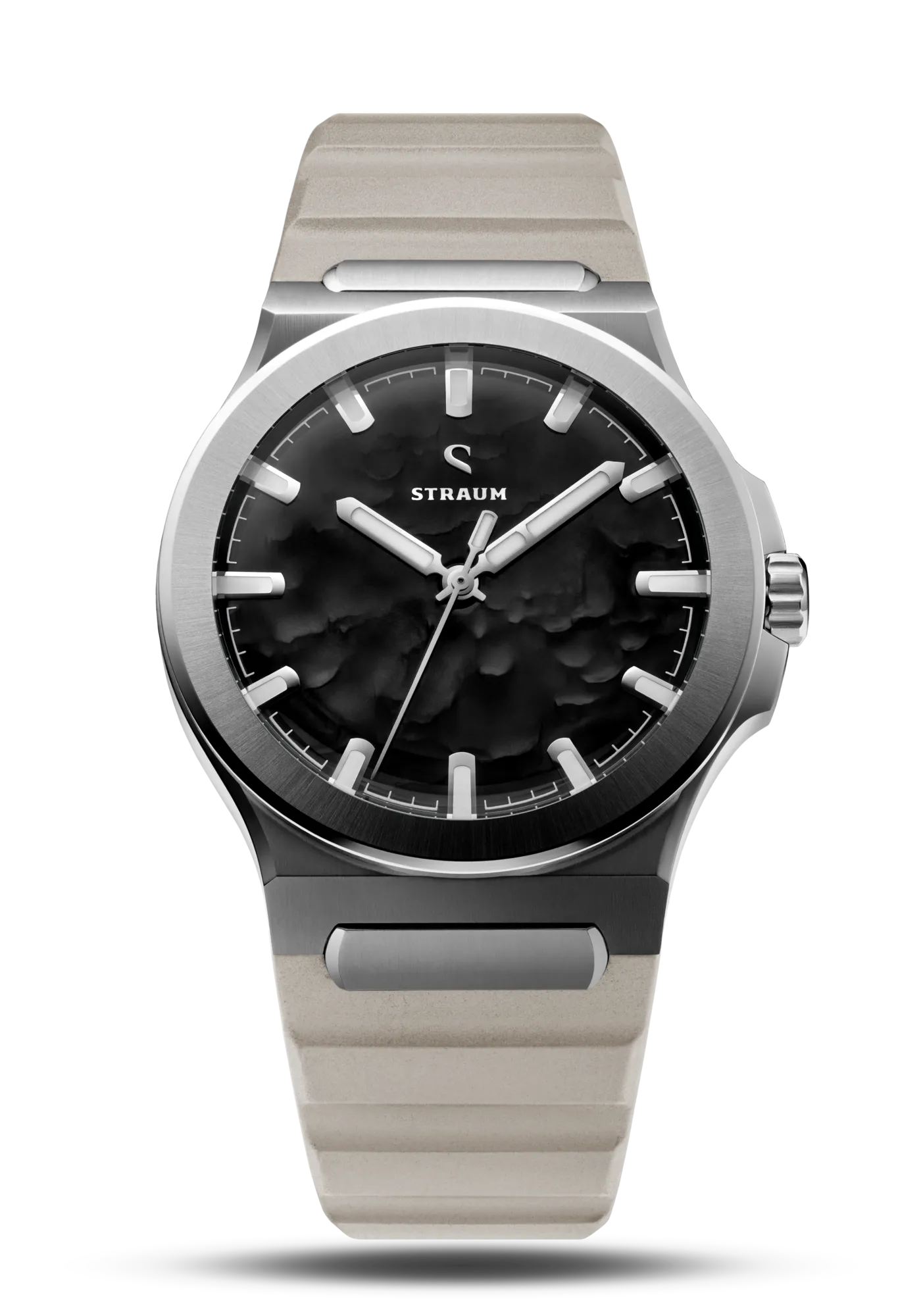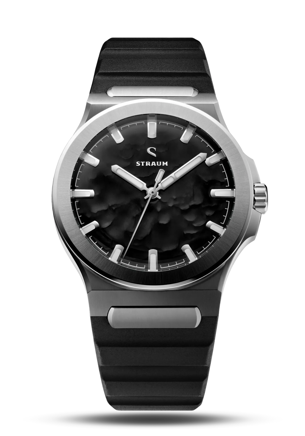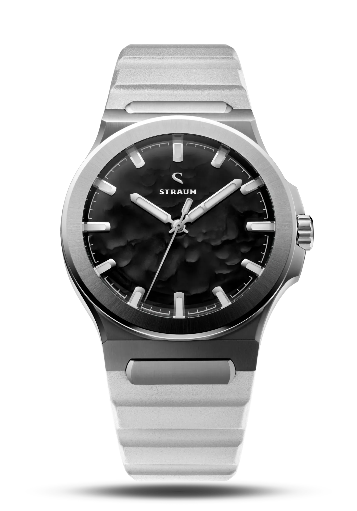 Select between our premium 316L Stainless Steel Bracelet or high-performance FKM Rubber Straps.The Bracelet features a seamless integrated design that tapers comfortably from 24.8mm to 18mm, securing with a custom push-button butterfly clasp. Two 130% precision links guarantee a perfectly tailored fit.Alternatively, the FKM Rubber Straps integrate seamlessly via the proprietary Straum Coupling. Their curved tip follows the wrist’s natural shape while a raised profile maximizes ventilation. Each strap is finished with a dedicated machined Straum buckle.