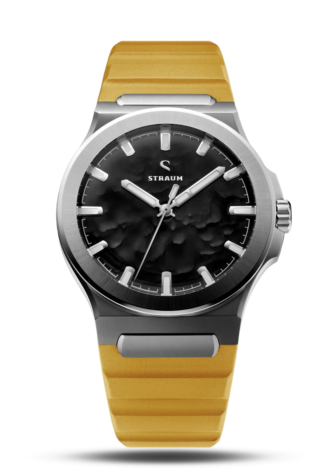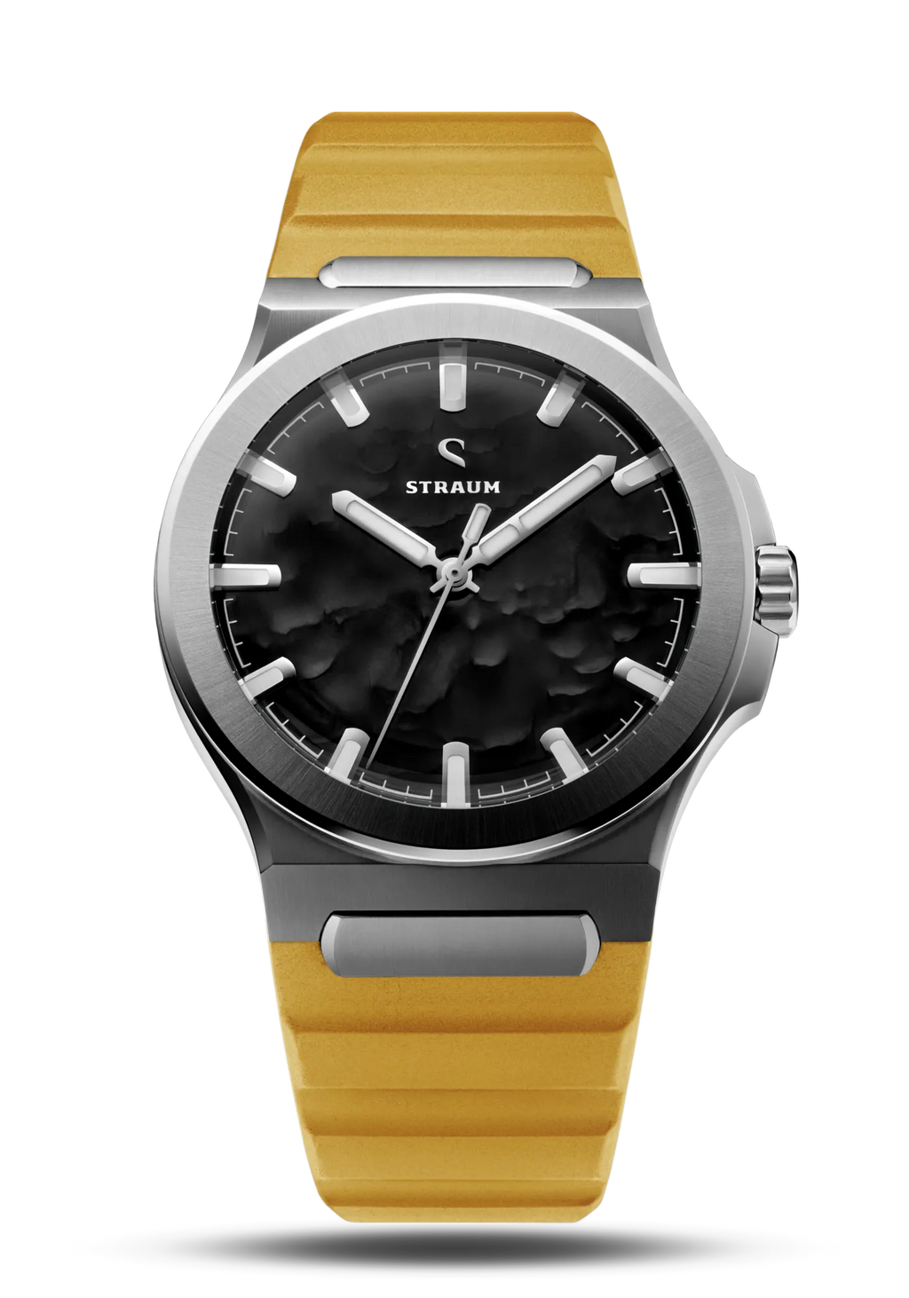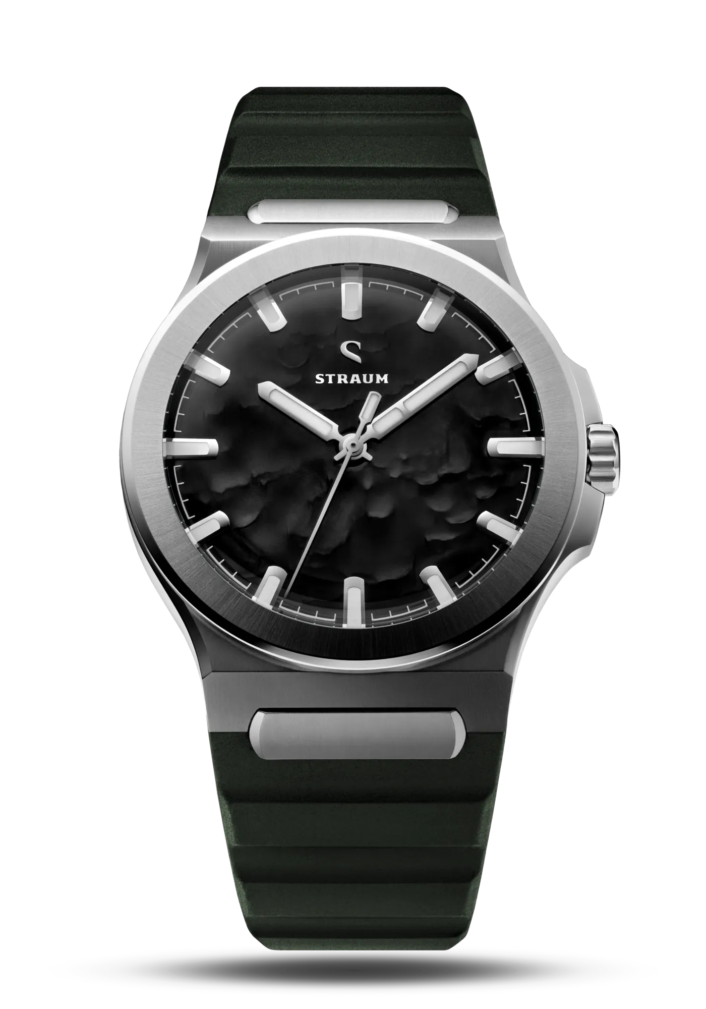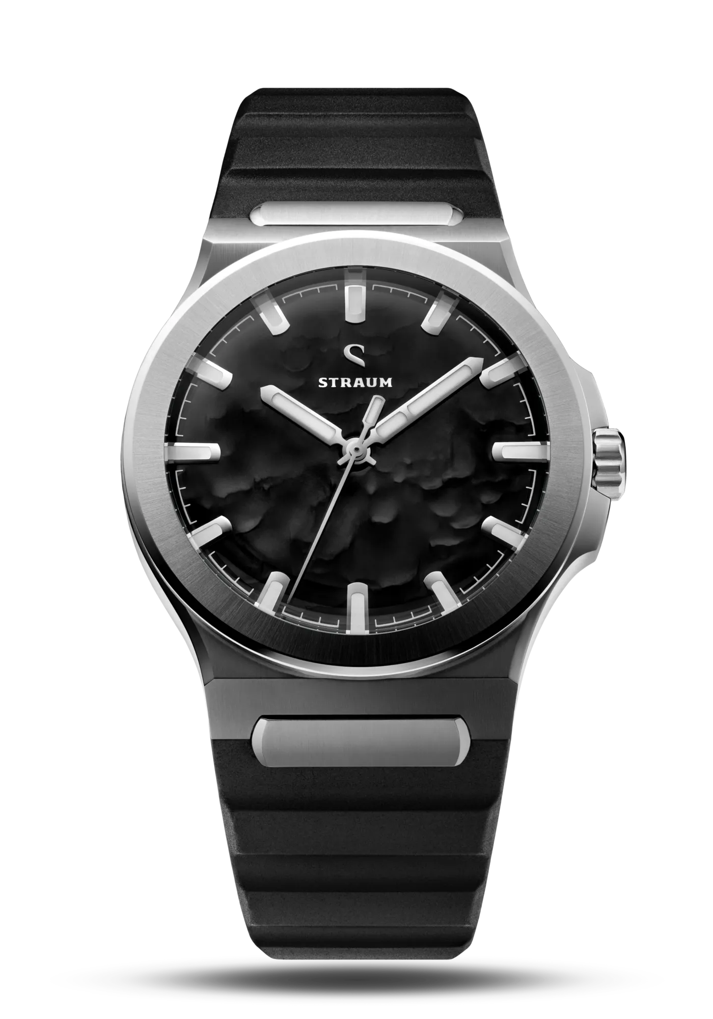Select between our premium 316L Stainless Steel Bracelet or high-performance FKM Rubber Straps.The Bracelet features a seamless integrated design that tapers comfortably from 24.8mm to 18mm, securing with a custom push-button butterfly clasp. Two 130% precision links guarantee a perfectly tailored fit.Alternatively, the FKM Rubber Straps integrate seamlessly via the proprietary Straum Coupling. Their curved tip follows the wrist’s natural shape while a raised profile maximizes ventilation. Each strap is finished with a dedicated machined Straum buckle.