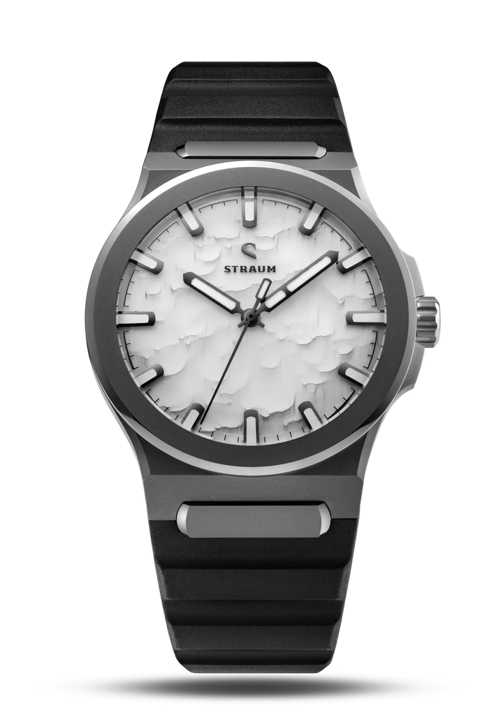 The FKM strap integrates seamlessly into the case via the Straum Coupling. Its curved tip follows the wrist’s natural shape, while the raised profile improves ventilation. It’s paired with the Straum buckle, machined from Grade 5 titanium.