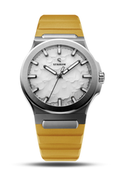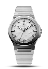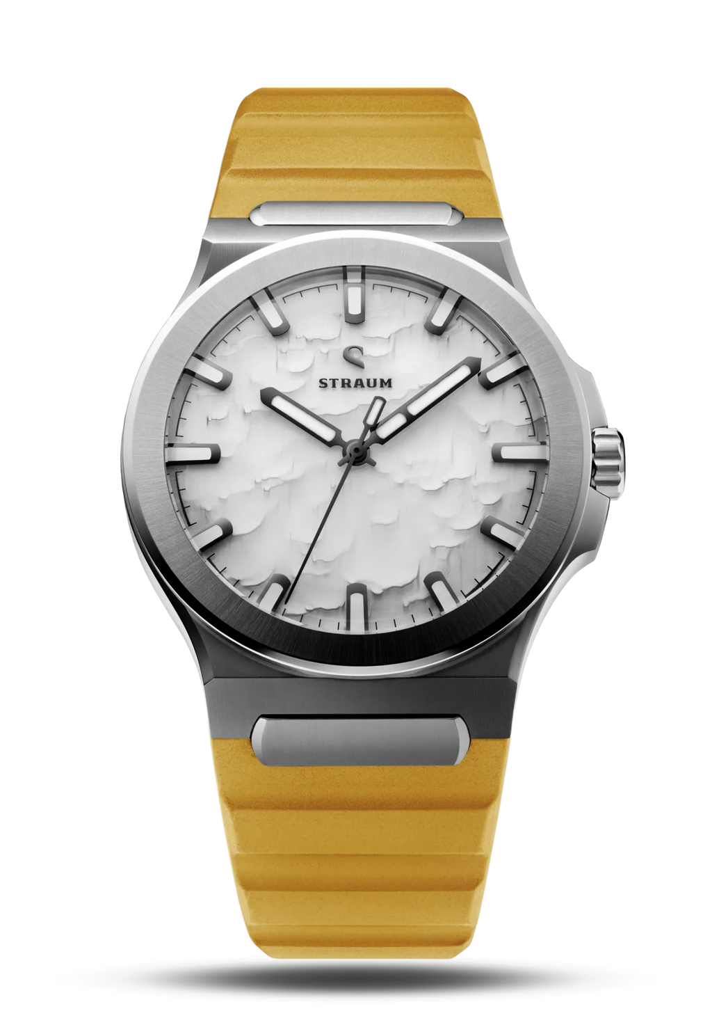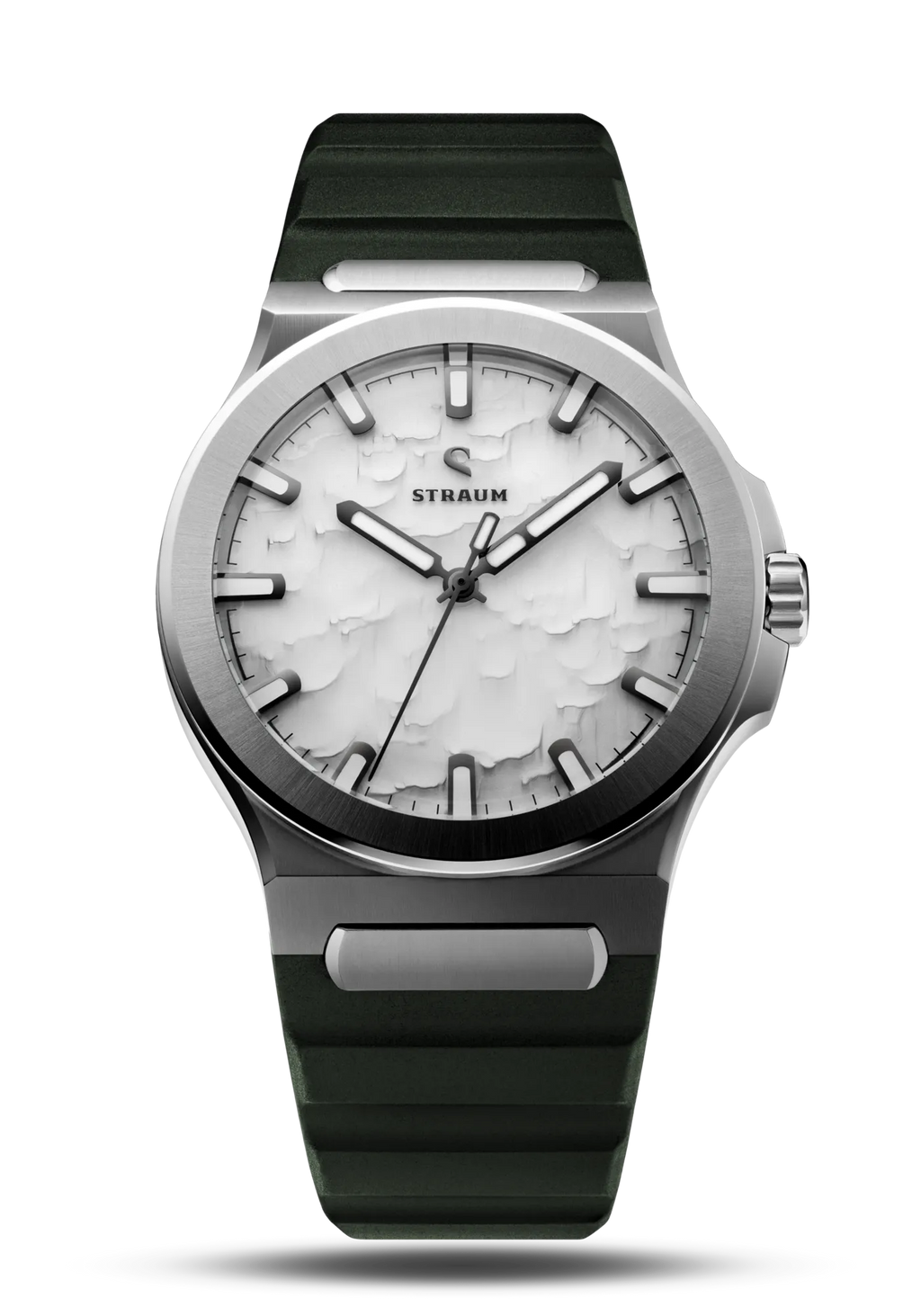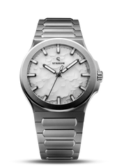 Select between our premium 316L Stainless Steel Bracelet or high-performance FKM Rubber Straps.The Bracelet features a seamless integrated design that tapers comfortably from 24.8mm to 18mm, securing with a custom push-button butterfly clasp. Two 130% precision links guarantee a perfectly tailored fit.Alternatively, the FKM Rubber Straps integrate seamlessly via the proprietary Straum Coupling. Their curved tip follows the wrist’s natural shape while a raised profile maximizes ventilation. Each strap is finished with a dedicated machined Straum buckle.