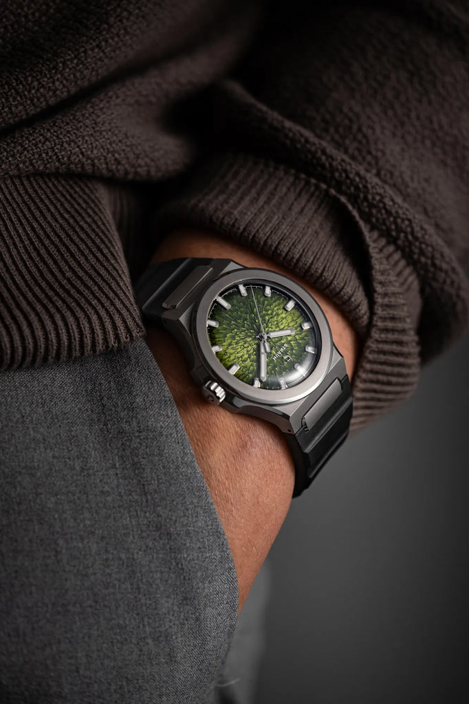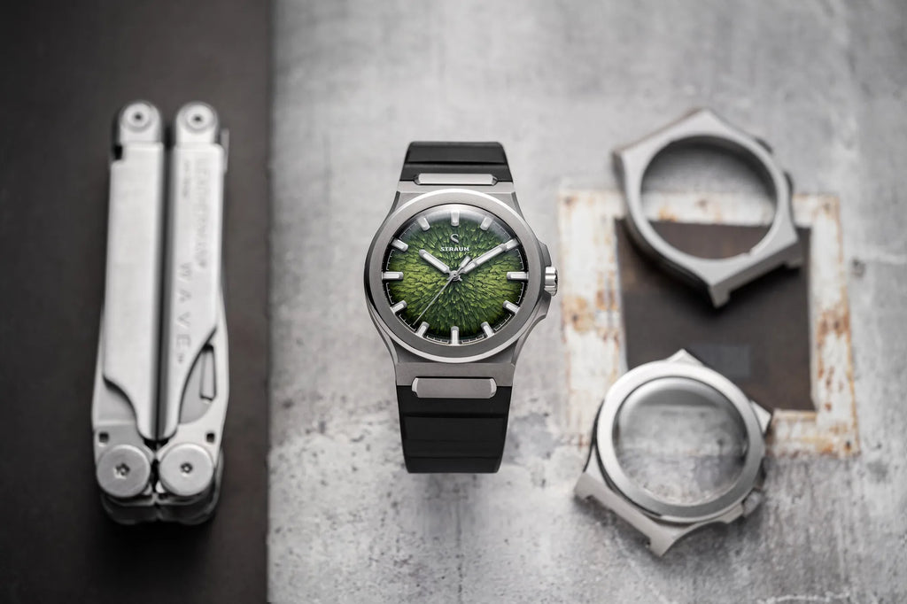 The The Straum x Time+Tide Jan Mayen Titanium Special Edition captures the golden moss hue signaling survival against Arctic light and lack of moisture.